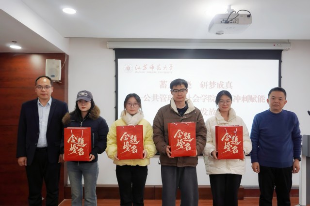 为助力考研学子坚定备考信心、提升冲刺效能,12月10日下午,公共管理与社会学院在学院报告厅举办“蓄力破晓研梦成真”考研冲刺赋能暨暖心礼包发放活动。院长祝天智教授出席活动并作冲刺动员辅导,50余名考研学生代表参与活动,现场洋溢着温暖与奋进的力量。