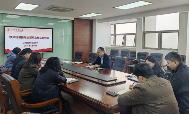 为全面复盘寒假及开学初期学生工作落实情况,部署本学期毕业生就业、非毕业班教育管理等重点任务,持续夯实学风建设基础,切实提升学生工作质量。3月11日,公共管理与社会学院召开新学期学风建设推进会暨班主任工作例会。学院全体班主任、辅导员参加会议,会议由学院党委副书记徐作锋主持。